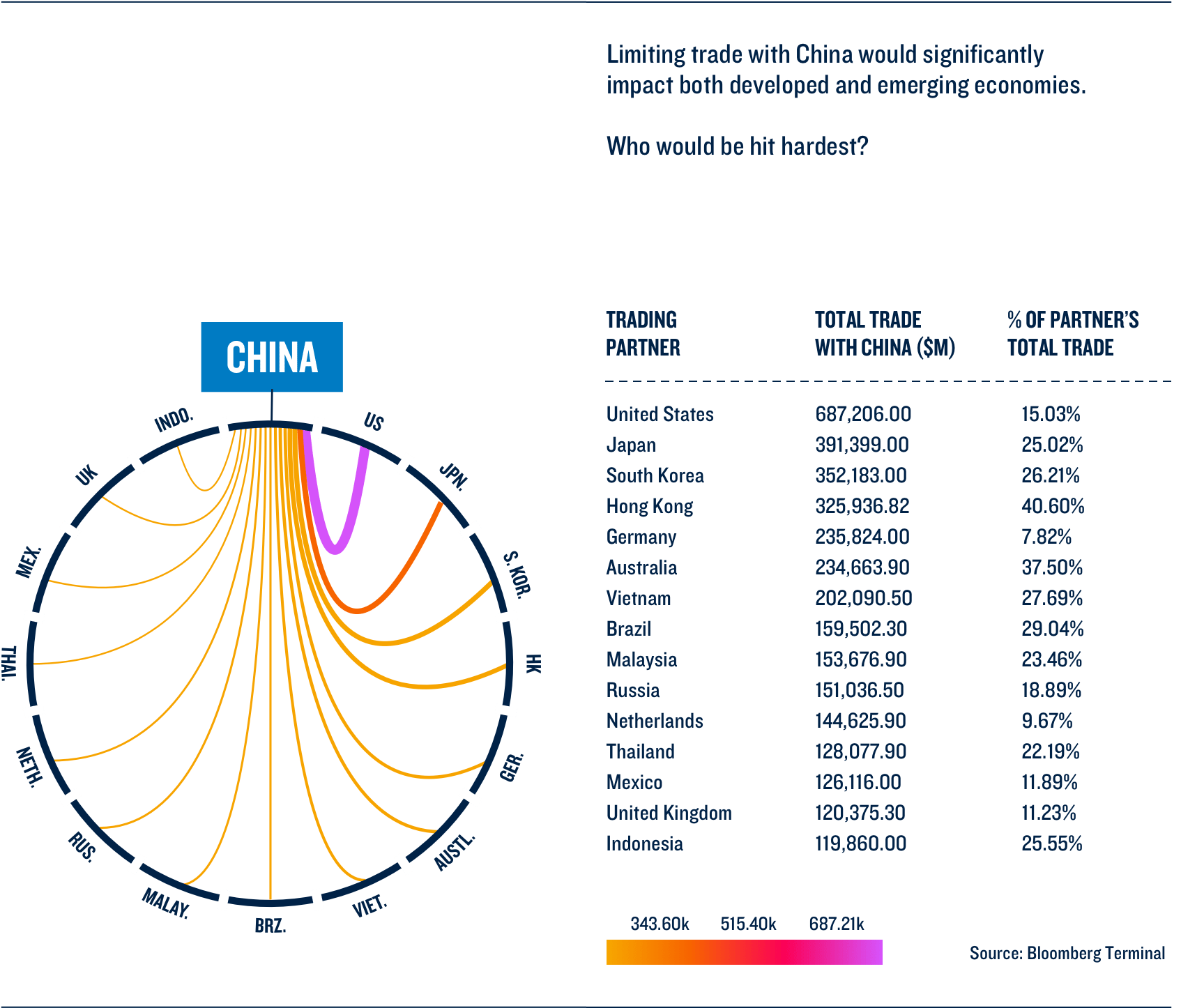 Limiting trade with China would significantly impact both developed and emerging economies.